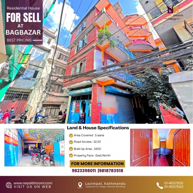 Primly Located 5.5 Storey Residential cum Commercial House for Sale at Bag bazar, Kathmandu.