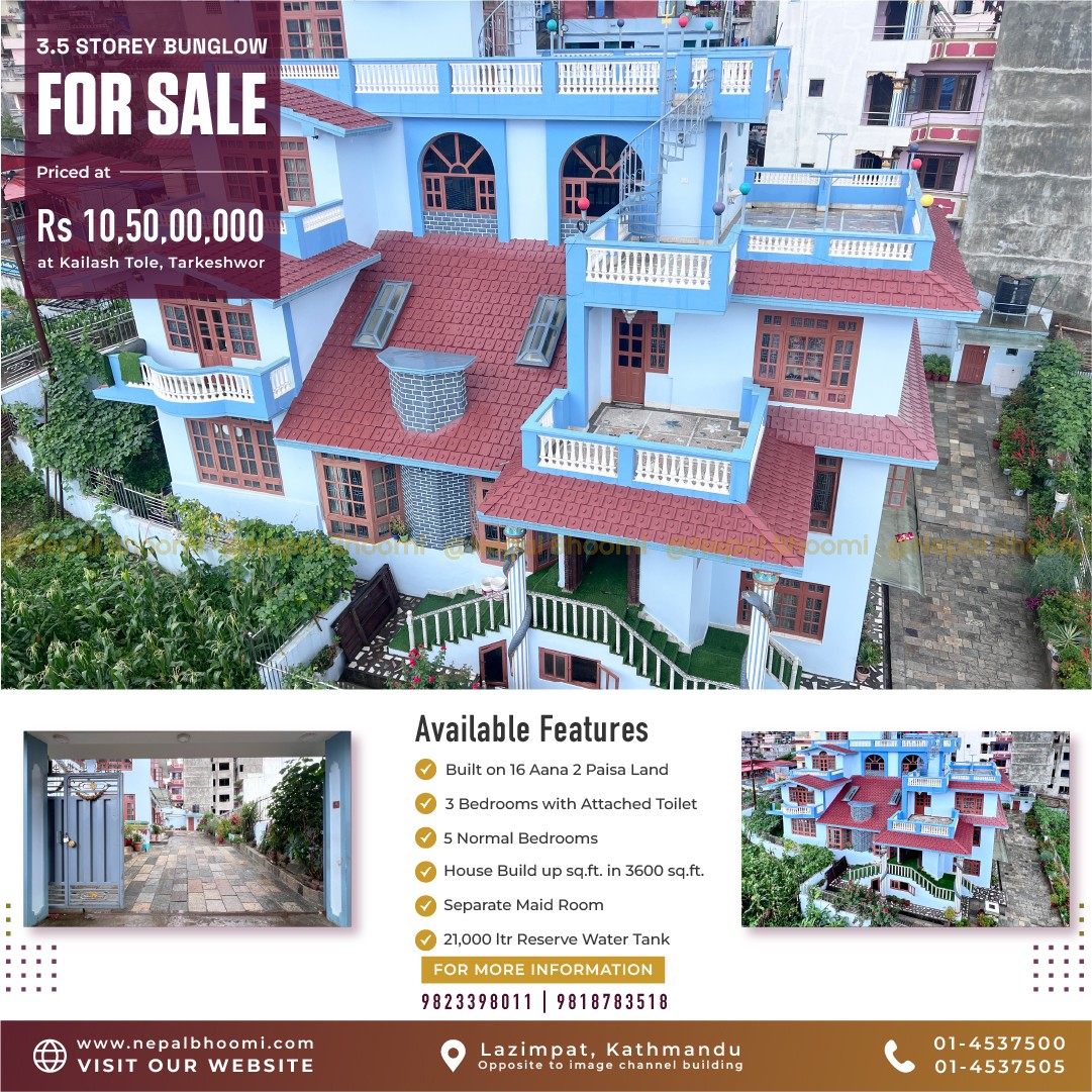 तर्केश्वोर गुम्बा, हिलेडोल कैलाश टोल भित्र आवासीय बंगलो घर तुरुन्तै बिक्रीमा |-