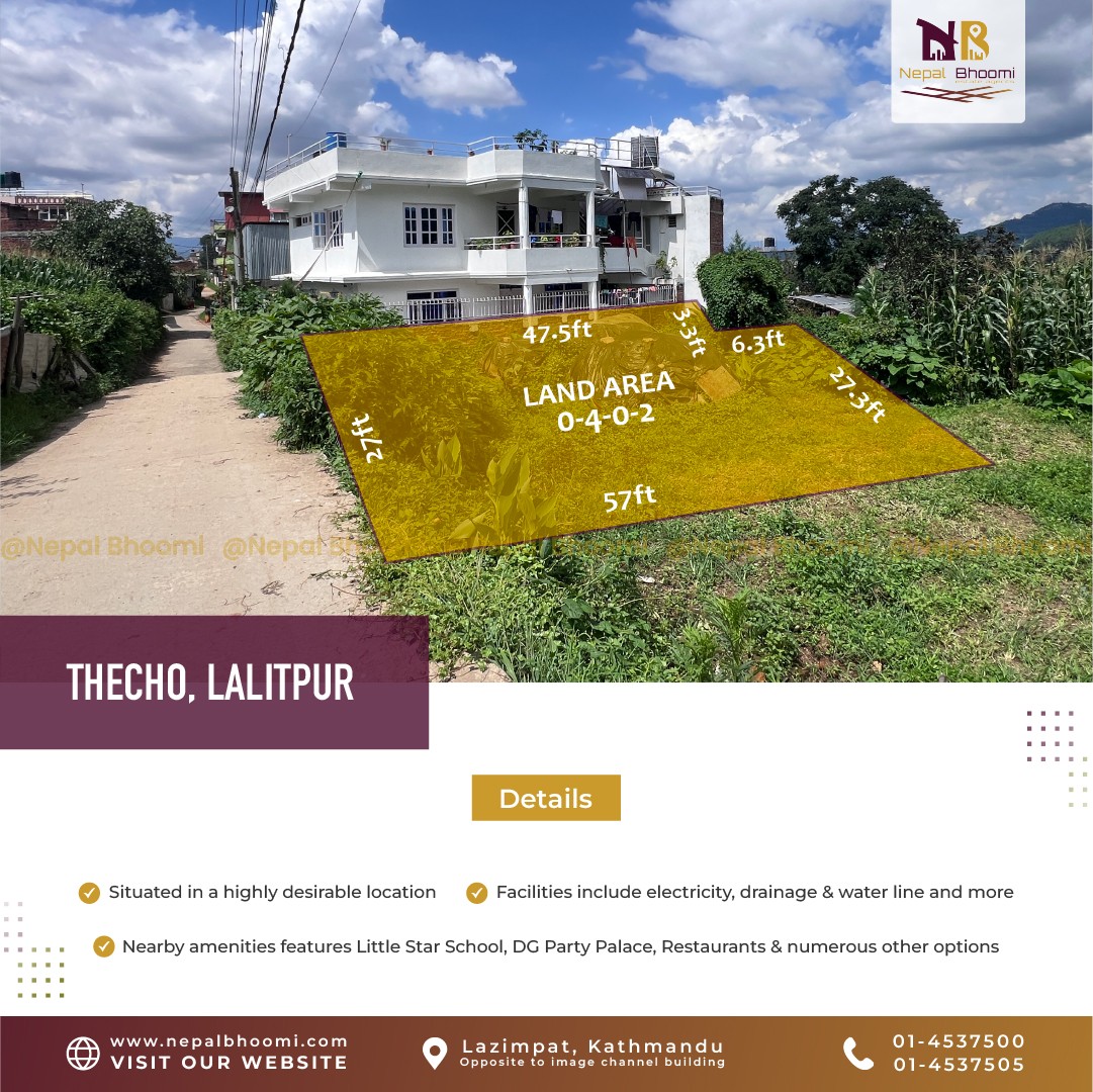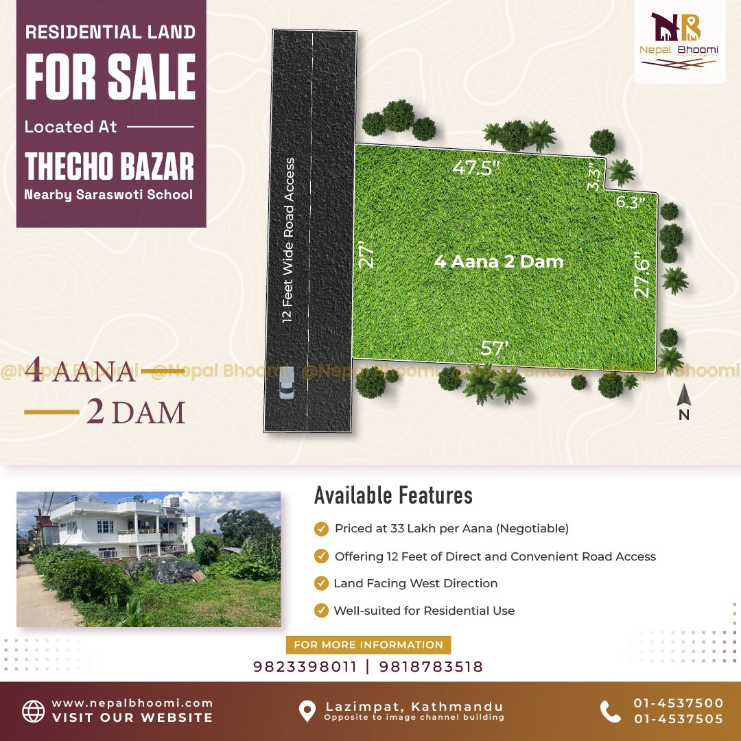 Residential 4 aana 2 dam Land "FOR SALE" at Theho Bazar, Lalitpur.
